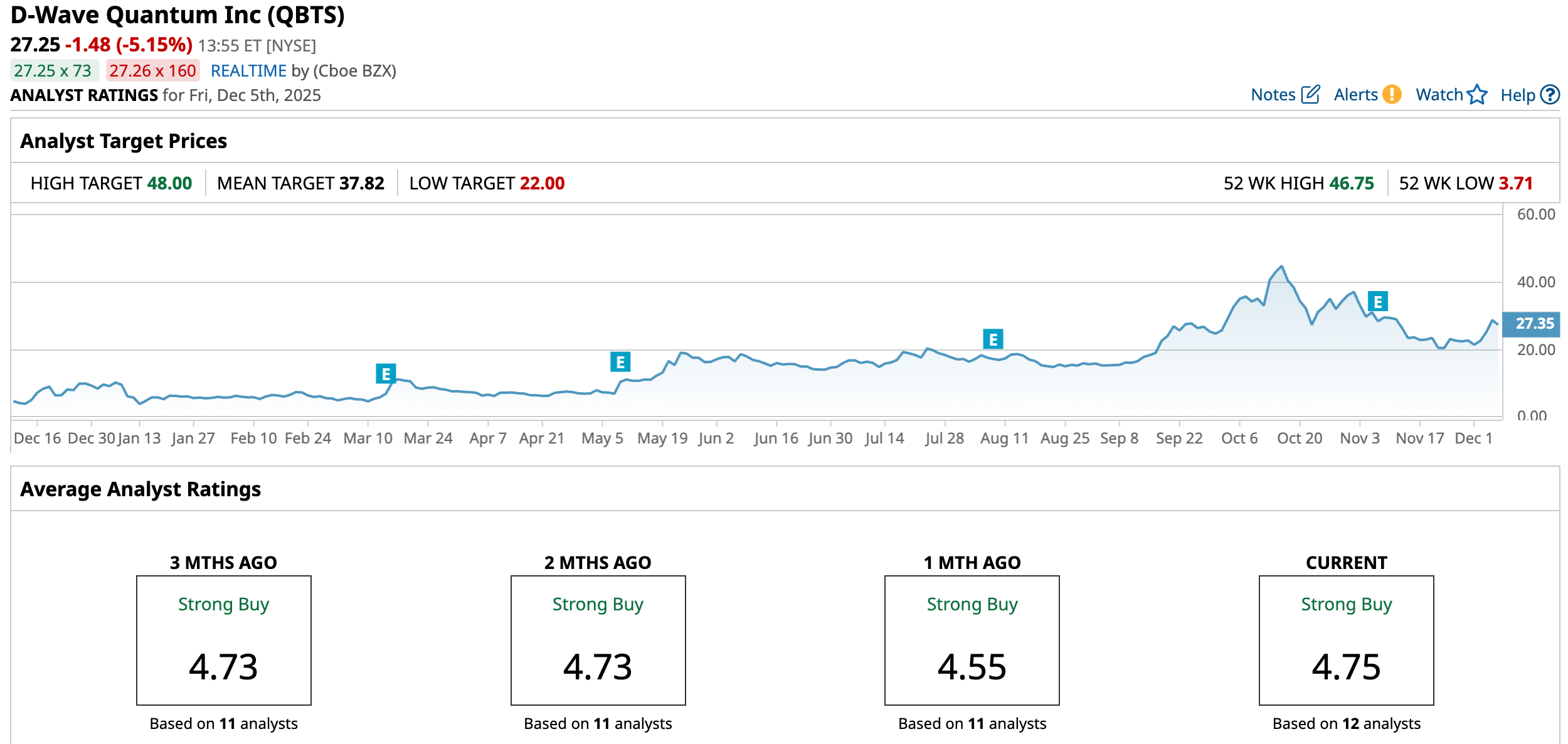 QBTS’ average price target of $37.82 represents potential upside of 38.6%. Meanwhile, the Street-high target of $48 suggests potential gain of 76% from current levels.