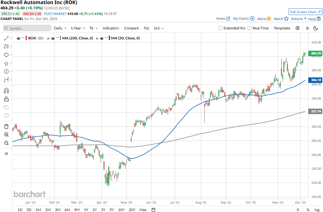 ROK stock touched its all-time high of $406.44 on Dec. 4 and is currently trading marginally below that peak. Meanwhile, the stock has soared 19% over the past three months, outperforming the Dow Jones Industrial Average’s ($DOWI) 5.6% uptick during the same time frame.