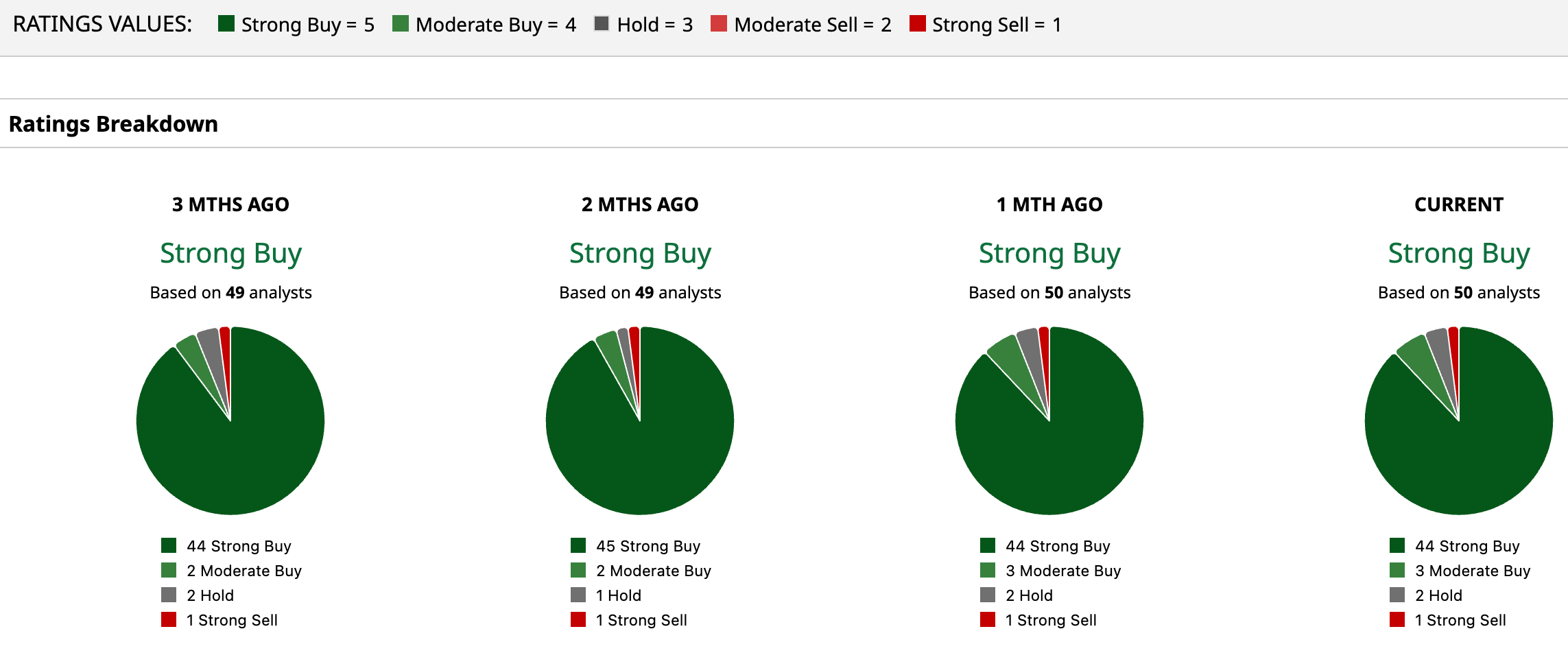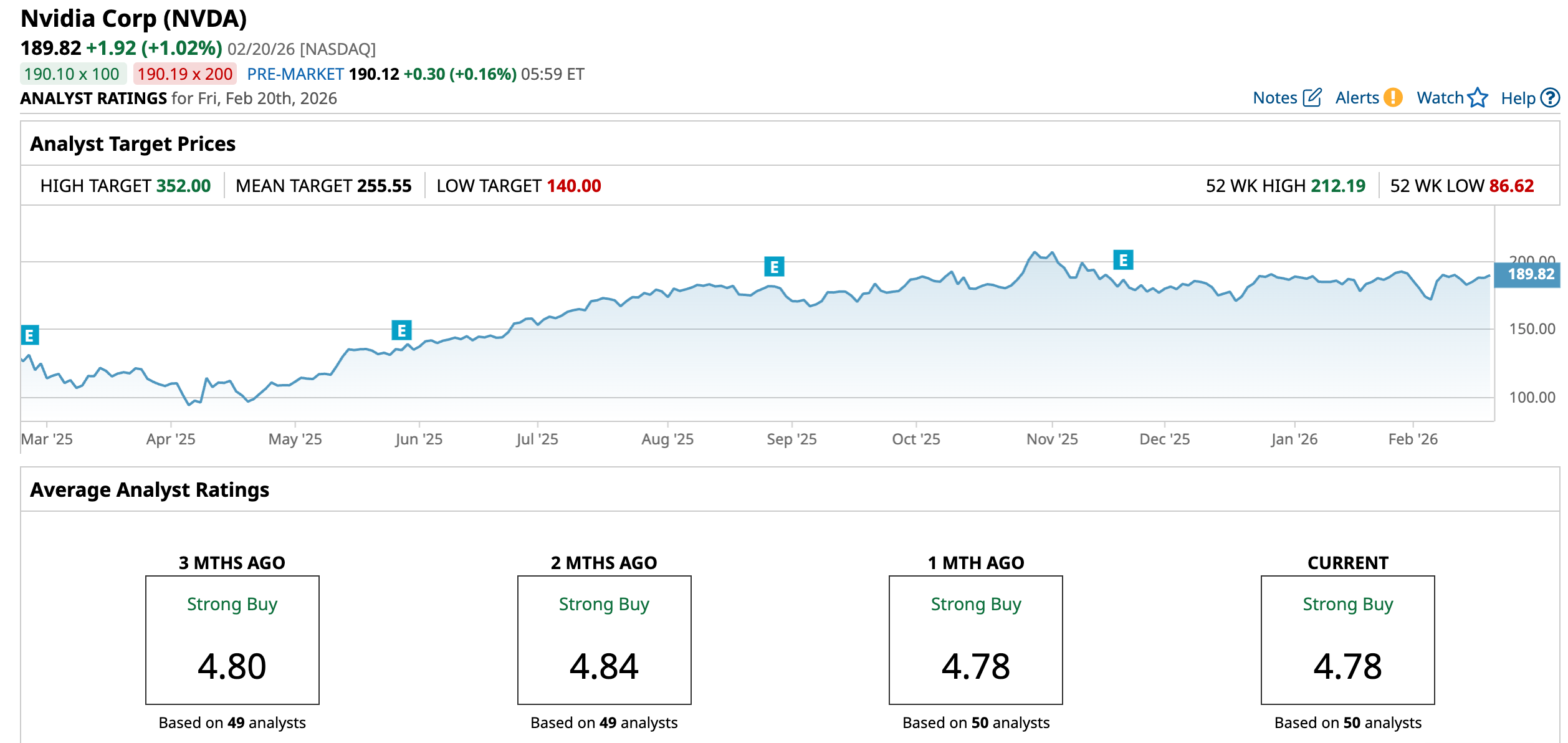 NVIDIA has been in the spotlight on Wall Street for some time now, with analysts awarding it a consensus “Strong Buy” rating overall. Of the 50 analysts rating the stock, a majority of 44 analysts have rated it a “Strong Buy,” three analysts suggest a “Moderate Buy,” two analysts are playing it safe with a “Hold” rating, and only one analyst gave a “Strong Sell” rating. The consensus price target of $255.55 represents 34.6% upside from current levels. Moreover, the Street-high price target of $352 indicates an 85% upside.
