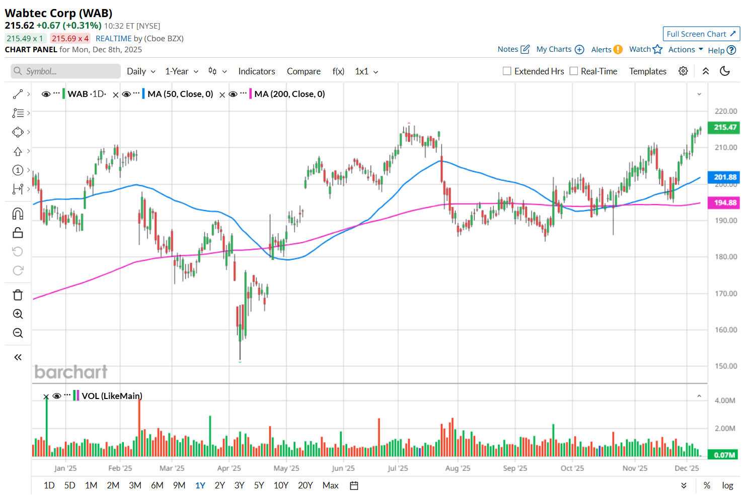 To confirm its recent bullish trend, WAB has been trading above its 200-day and 50-day moving averages since late September, with slight fluctuations.