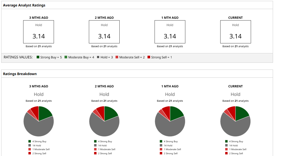 Overall, Wall Street has a consensus “Hold” rating on PLTR, with an average 12-month price target of $191.7 implies an upside of 6% from current levels.