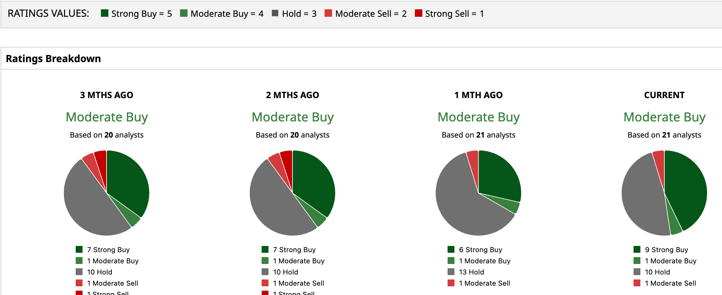 Across Wall Street, sentiment remains constructive. Analysts have assigned U an overall “Moderate Buy” rating. Of the 21 covering analysts, nine call the stock a “Strong Buy,” one recommends a “Moderate Buy,” 10 advise “Hold,” and one maintains a “Moderate Sell.”
