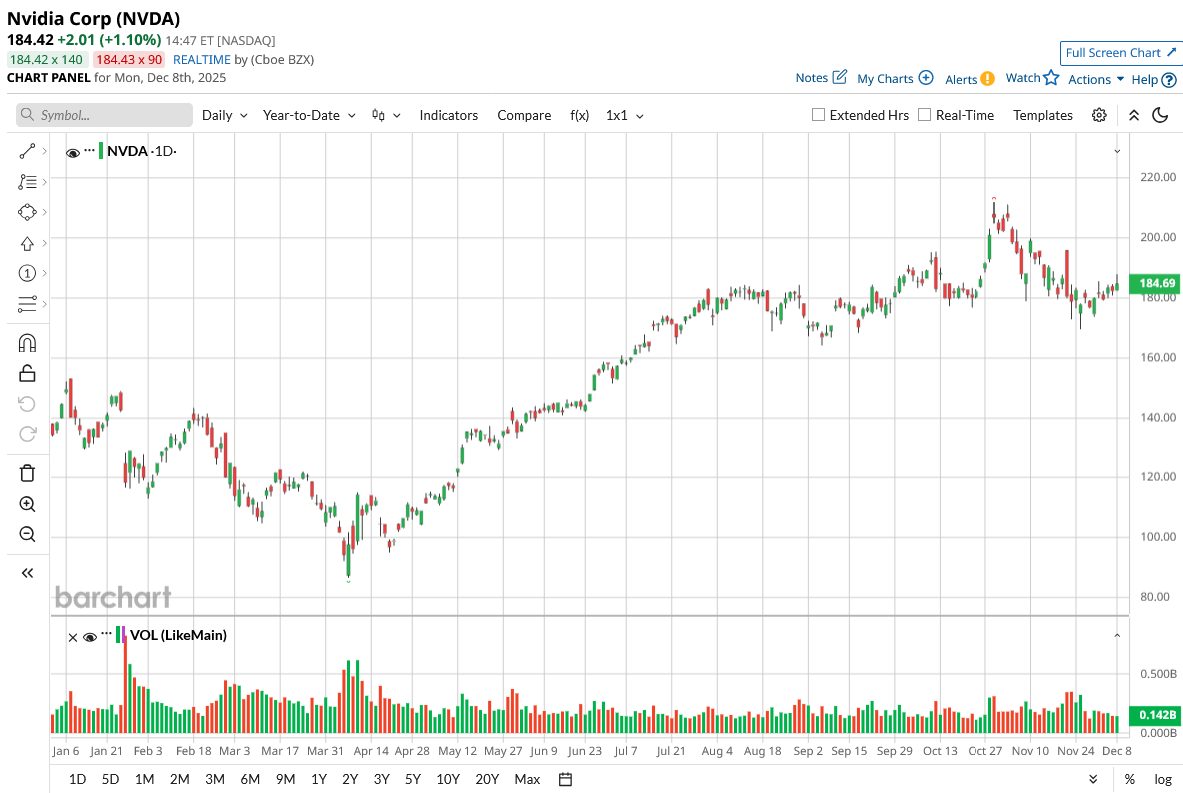 Shares of the AI darling have climbed 37% on a year-to-date (YTD) basis. NVDA stock has gone essentially nowhere since my previous article, as investors appear to continue digesting The Information report about the potential Meta-Google deal. While occasional dip-buying has helped the stock hold the $180 support level, there’s still no clear bullish momentum on the chart, suggesting the stock may continue to consolidate around this level.