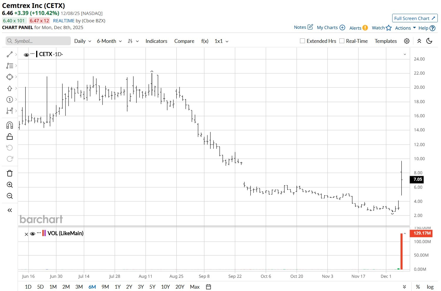 Despite the massive surge on Monday, Cemtrex stock is trading only at a fraction of its price at the start of 2025.