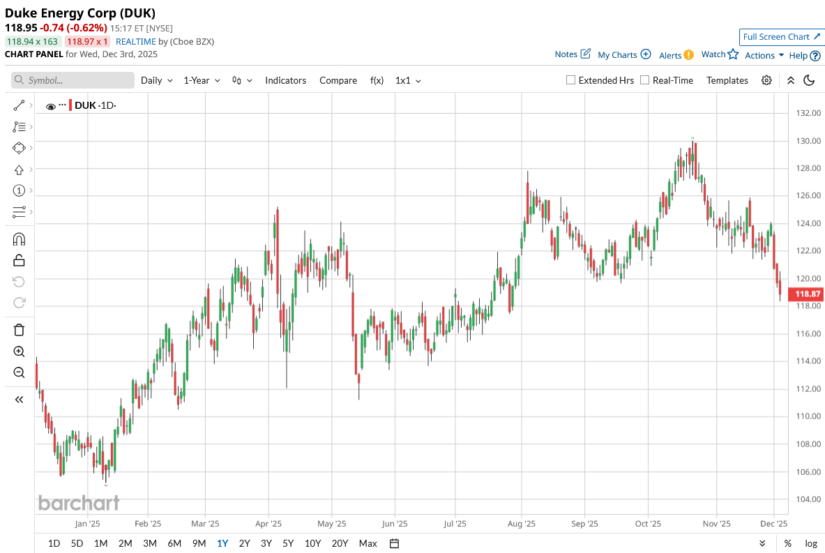 Price sits at $118.95 as of Dec. 3, with DUK up 10% year to date and 5% over the last 52 weeks.
