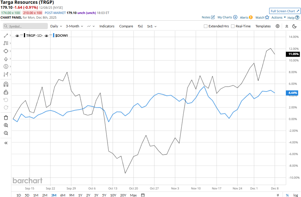 The midstream energy giant touched its all-time high of $218.51 on Jan. 22 and is currently trading 18% below that peak. Meanwhile, TRGP stock has surged 11.6% over the past three months, compared to the Dow Jones Industrial Average’s ($DOWI) 4.9% uptick during the same time frame.
