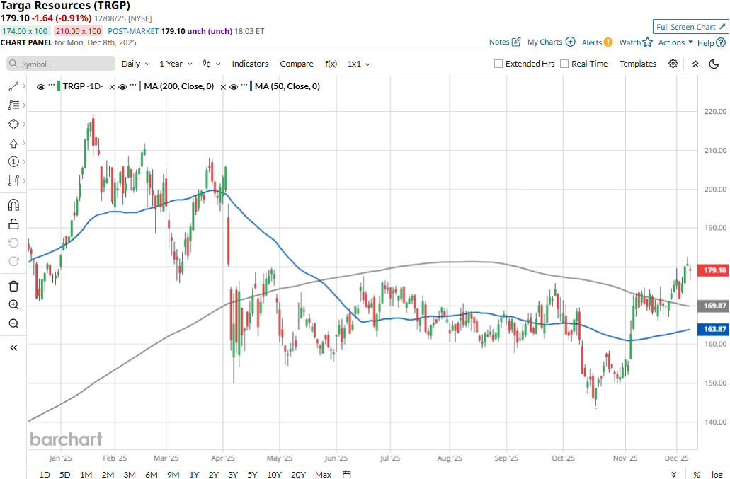 TRGP stock has surged above its 50-day moving average in early November and above its 200-day moving average since late November, underscoring its recent upturn.
