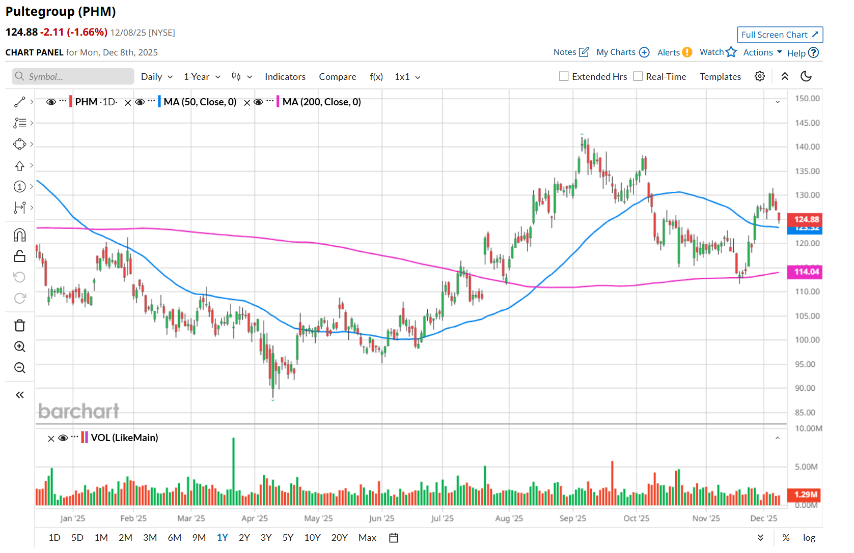 Companies valued at $10 billion or more are typically classified as “large-cap stocks,” and PHM fits the label perfectly, with its market cap exceeding this threshold, underscoring its size, influence, and dominance within the residential construction industry. With a diversified geographic footprint and a consumer-targeted product mix, the company continues to benefit from favorable demographic trends and sustained demand for new construction homes in the U.S.
