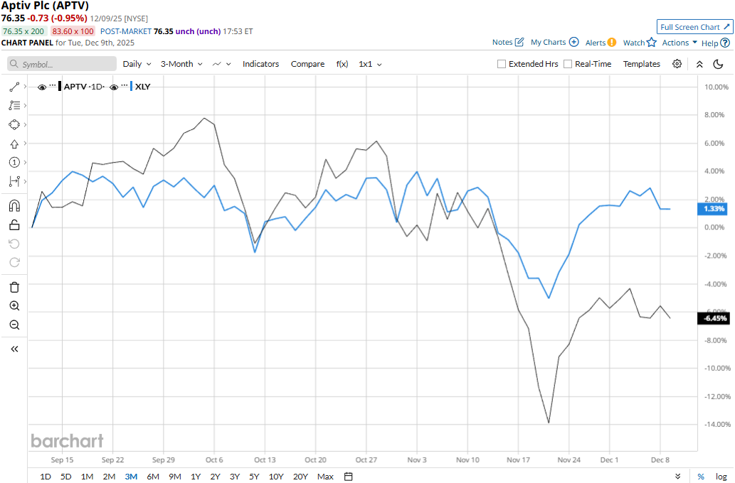 Despite its notable strengths, APTV stock has dropped 14% from its 52-week high of $88.80 touched on Oct. 6. Meanwhile, APTV stock prices have declined 7.1% over the past three months, lagging behind the Consumer Discretionary Select Sector SPDR Fund’s (XLY) 11 bps uptick during the same time frame.