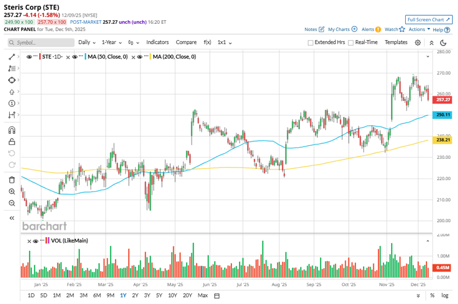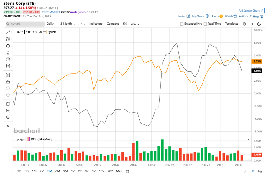Despite its notable strength, STE slipped 4.2% from its 52-week high of $268.60, achieved on Nov. 25. Over the past three months, STE stock has gained 3.6%, underperforming the S&P 500 Index’s ($SPX) 5% gains during the same time frame.