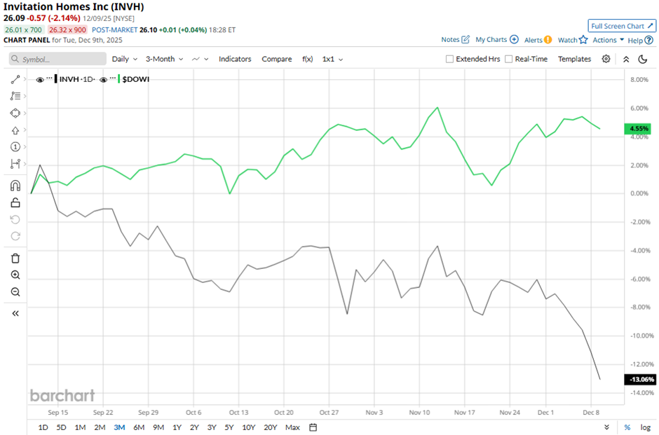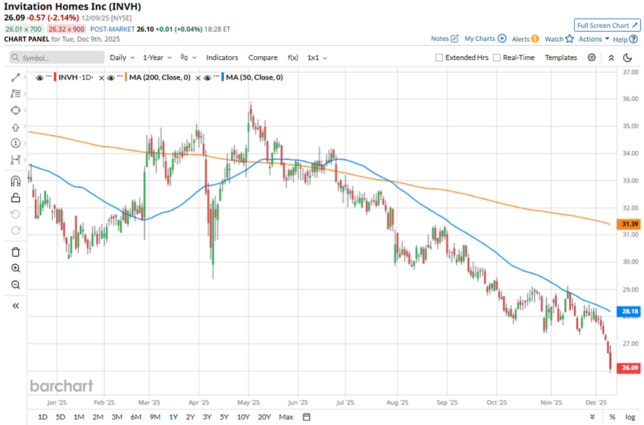 In comparison, rival Equity Residential (EQR) has shown a less pronounced decline than INVH stock. EQR stock has dropped 16.3% YTD and 18.5% over the past 52 weeks.
