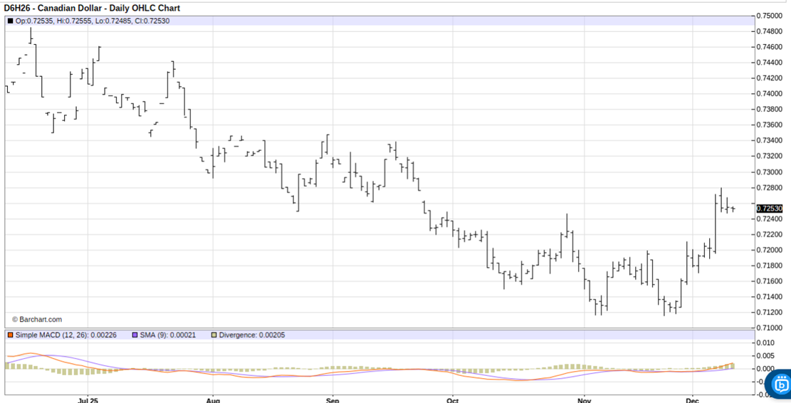 March Canadian dollar (D6H26) futures present a buying opportunity on more price strength.