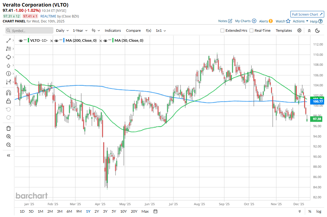 VLTO has significantly underperformed its rival, CECO Environmental Corp. (CECO), which surged 70.5% over the past 52 weeks and 89.8% on a YTD basis.