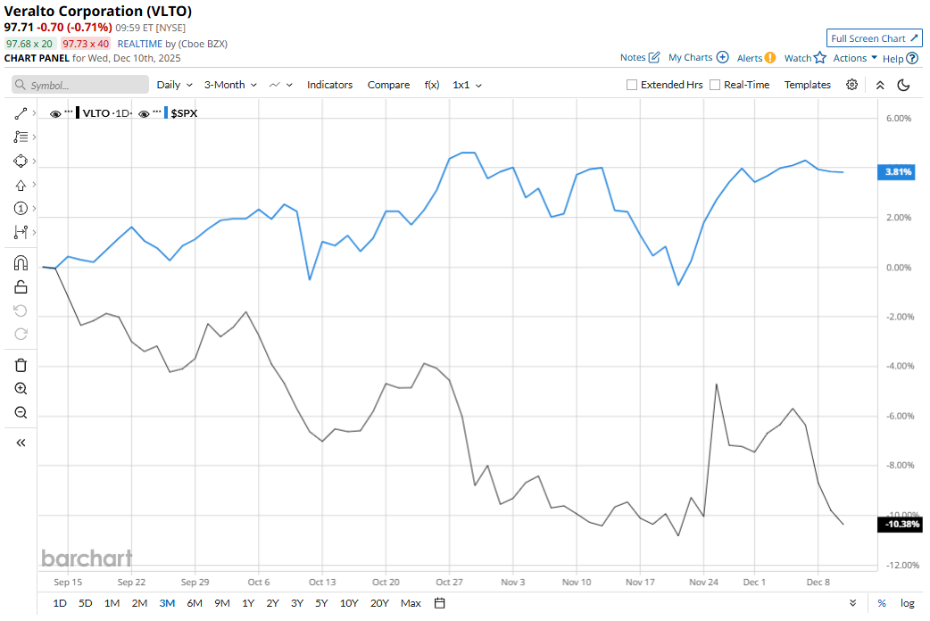In the longer term, VLTO has fallen 7.9%Â over the past 52 weeks and 3.8% on a year-to-date (YTD) basis, underperforming the SPX's 13.3% rise over the past year and 16.3% gains this year.Â