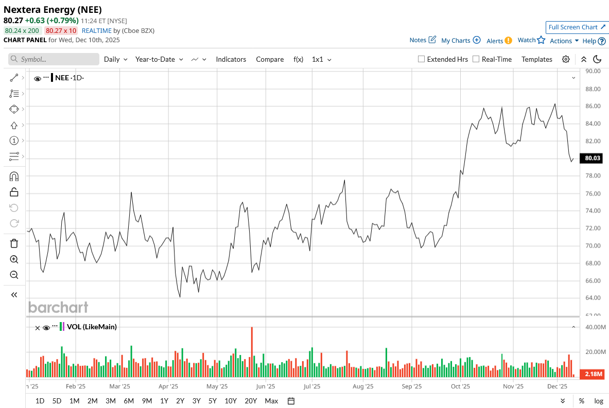 With about 76 gigawatts of operating capacity spanning nuclear, natural gas, wind, solar, and battery storage, NextEra Energy stands as the leading clean-energy infrastructure owner in North America and one of the largest electric utilities overall. The company currently maintains its most robust development pipeline ever, carrying a signed backlog of roughly 30 gigawatts, with an additional 3 gigawatts of new renewables and storage projects secured during the third quarter alone.