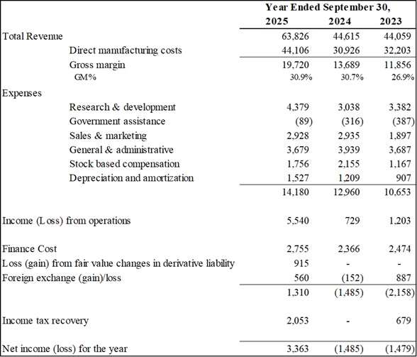 Revenue for FY 2025 was $63.8 million, compared to $44.6 million in the fiscal year ended September 30, 2024 ("FY 2024"). An increase of $19.2 million or 43% year over year.