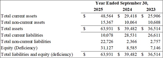 Selected Annual Financial Information for the Years ended September 30, 2025, 2024 and 2023: