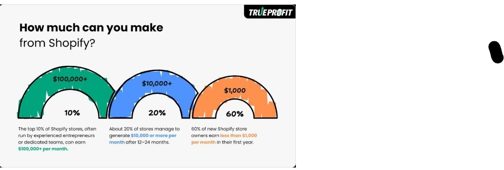TrueProfit’s analysis of early-stage merchants, however, paints a more nuanced picture. In its guide on how much can you make from shopify, the company notes that typical outcomes vary widely: