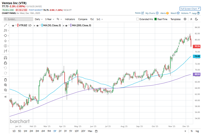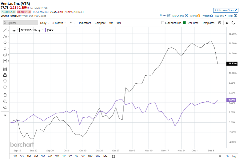 Shares of VTR have fallen 5.1% from its 52-week high of $81.89 touched on Dec. 9. VTR stock has surged 12.3% over the past three months, outperforming the S&P 500 Index’s ($SPX) 5.4% rally over the same period.