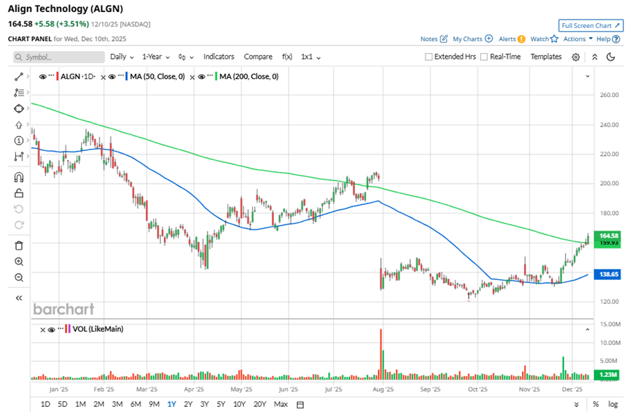 To confirm the bullish trend, ALGN has been trading above its 200-day moving average recently, despite a negative price momentum. The stock is trading above its 50-day moving average since late October.