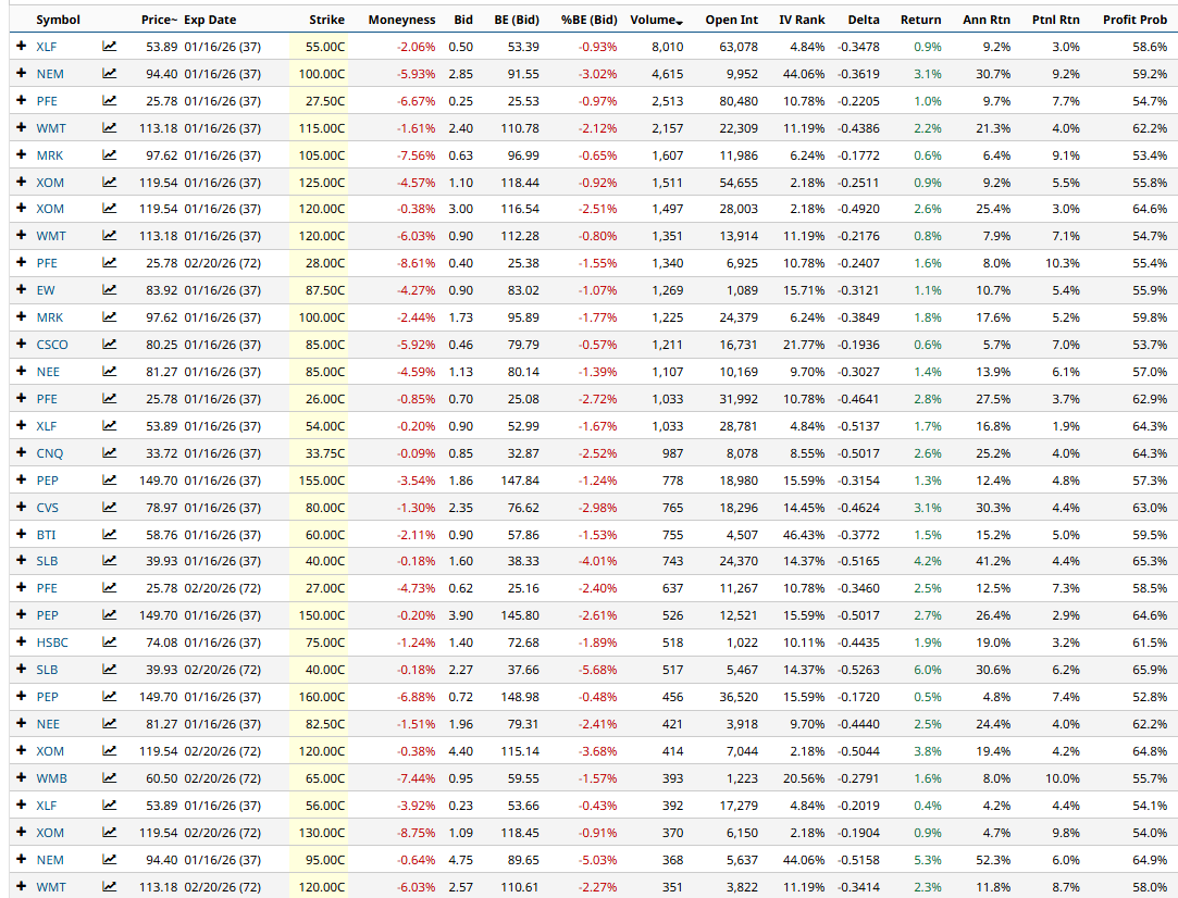 Now, we’re seeing some more mainstream names such as XLF, NEM, PFE, WMT, MRK and XOM.