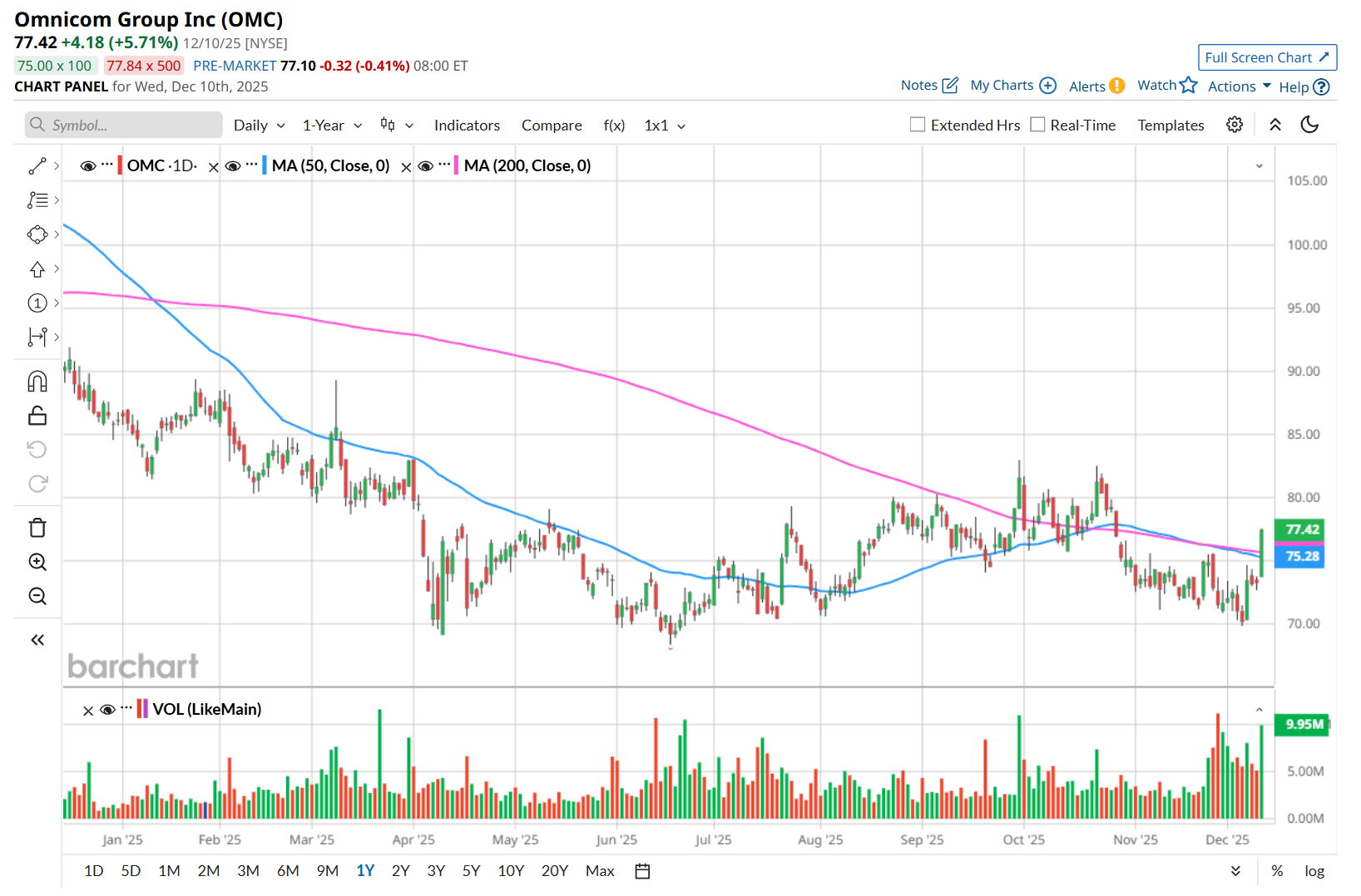 To confirm its bullish trend, OMC has recently started trading above its 200-day and 50-day moving averages since early December.