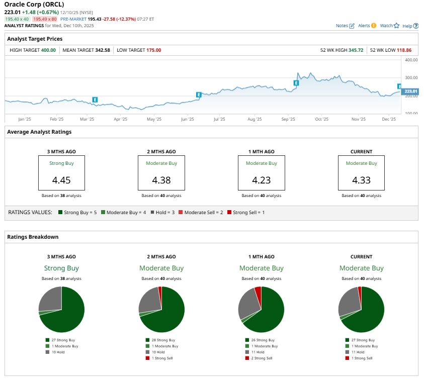 Notably, the heavy capital spending will continue to pressure Oracle’s cash flow in the near term. These concerns have kept a few analysts from endorsing ORCL stock.