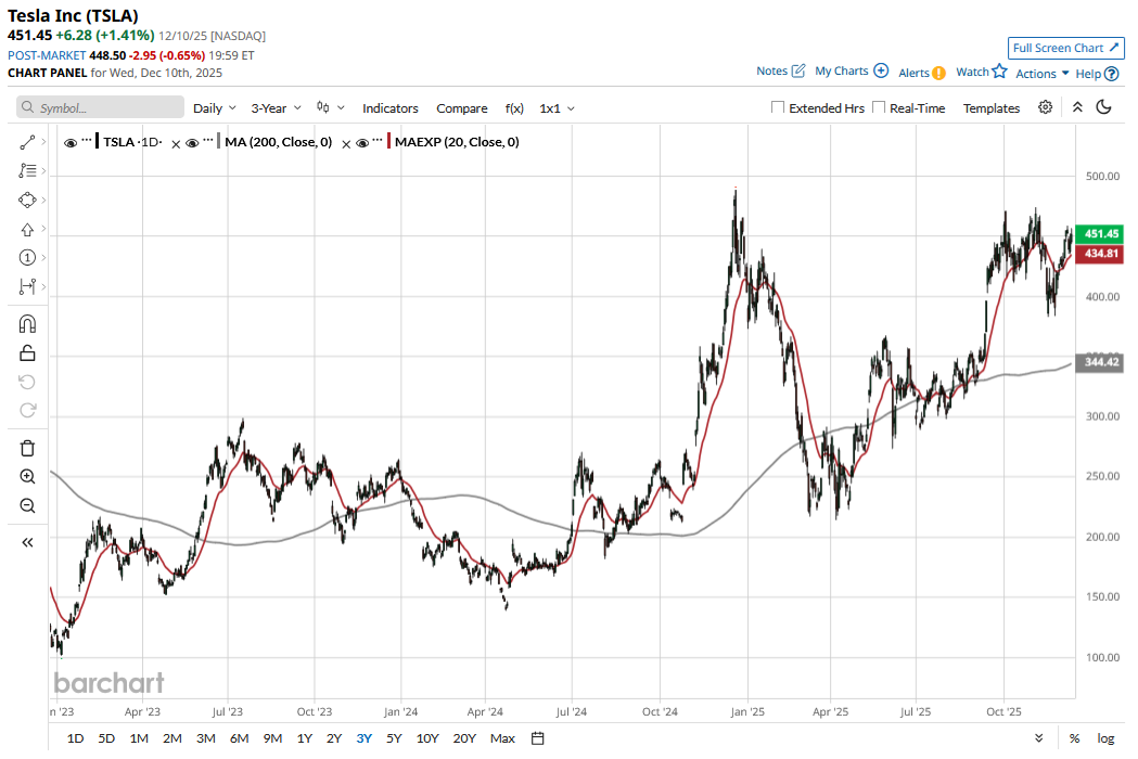 All said, the next couple of years are quite crucial for Tesla. The first key test for the company would be removing the safety drivers from the robotaxis, as by Musk’s own assertion, autonomy holds the key to Tesla’s current valuation. The company has been kicking the can down on full autonomy for years now but would need to deliver on that milestone soon, as beyond a point, there won't be many buyers of the “end of the year” promise. On a similar note, robotaxi expansion, both in the U.S. and internationally, would be a key driver for Tesla shares over the next year.