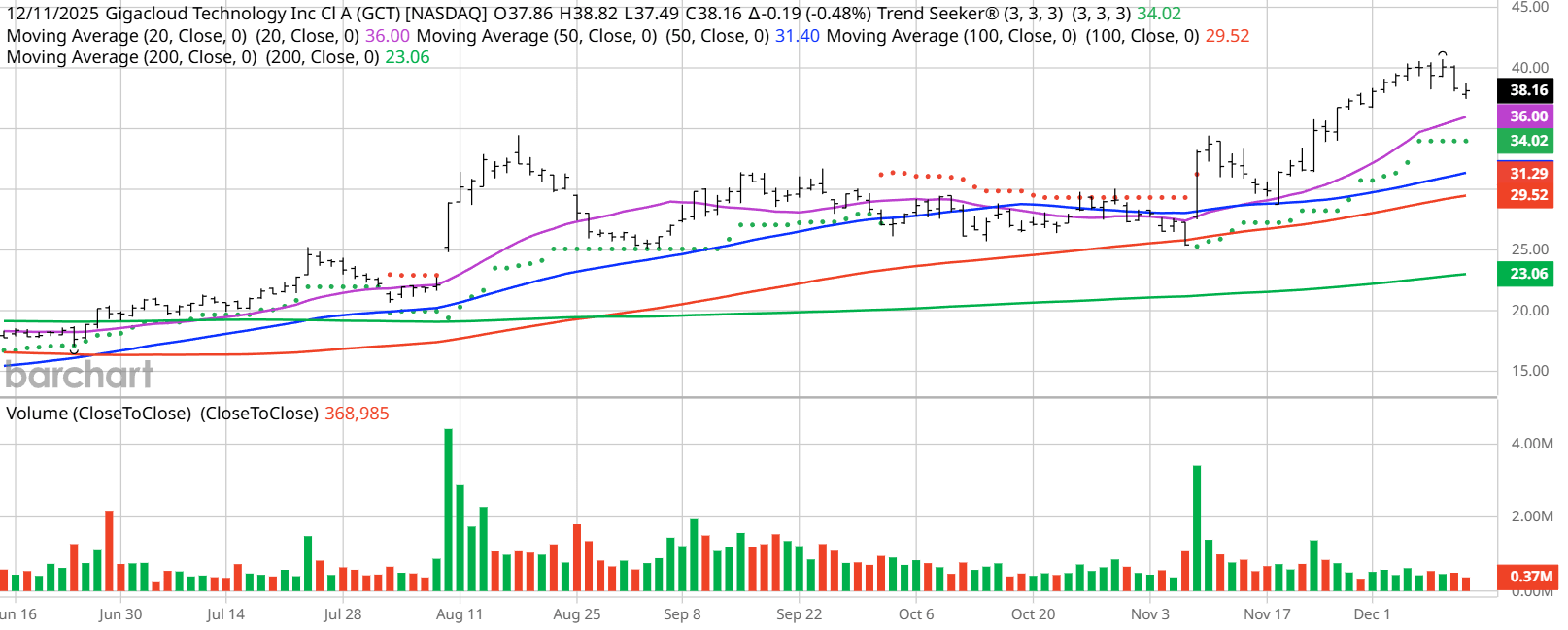 Barchart Technical Indicators for GigaCloud Technology