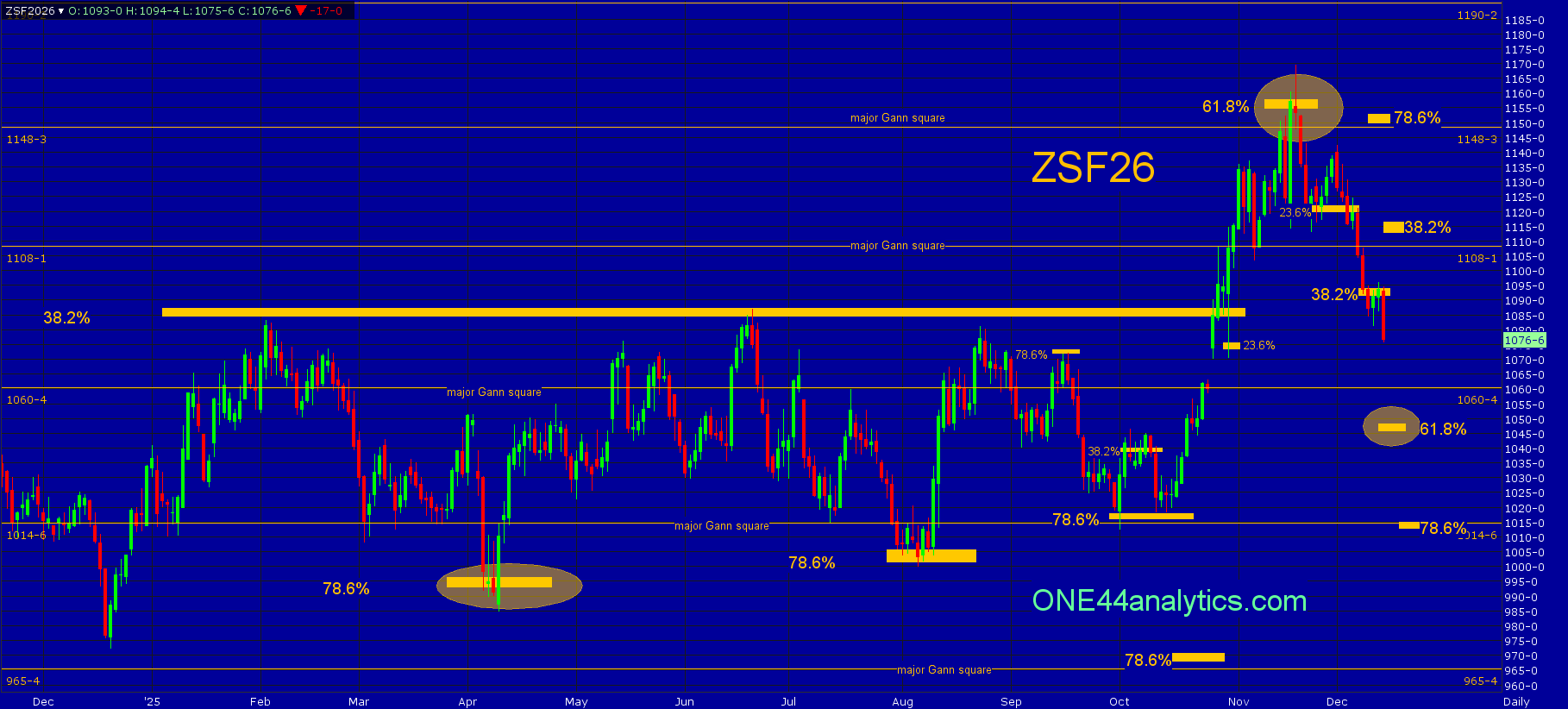 The Break In Soybeans For 61.8% (1154.00) And The 1148.25 Major Gann Square Continues, Here Is Our Target.