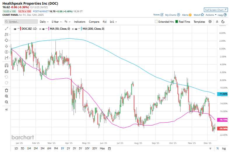 Valued at a market cap of $11.6 billion, Healthpeak Properties, Inc. (DOC) is a publicly traded real estate investment trust (REIT) headquartered in Denver, Colorado. The company owns, develops, and manages a diversified portfolio of properties, including life science facilities, medical offices, and senior housing communities.