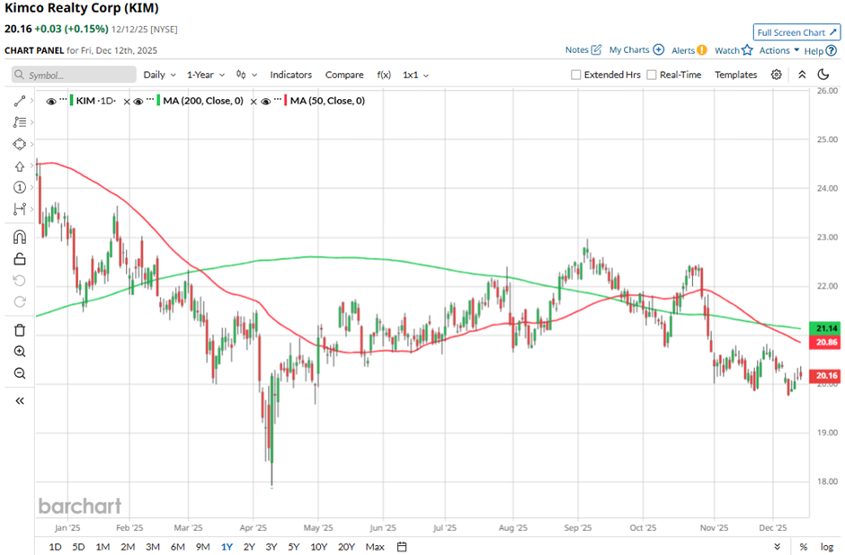 With a market cap of $13.7 billion, Kimco Realty Corporation (KIM) is a leading U.S. real estate investment trust specializing in high-quality, open-air, grocery-anchored shopping centers and mixed-use properties concentrated in top metropolitan and high-barrier-to-entry markets. The company brings more than 65 years of expertise in shopping center ownership, management, acquisitions, and redevelopment.