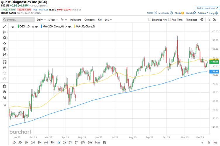 Over the longer term, this stark underperformance somewhat fades. Over the past six months, the stock has gained approximately 2%, while the ETF has risen 12.6%. However, over the past 52 weeks, DGX’s stock has increased by 17%, outperforming the Health Care ETF’s 9.3% return. The stock has been consistently trading above its 200-day moving average over the past year and is currently hovering near its 50-day moving average.