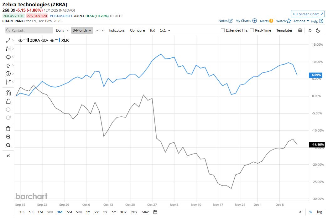 ZBRA is trading 37.3% below its 52-week high of $427.76, which it hit on Jan. 22. The stock has declined 14.2% over the past three months, underperforming the broader Technology Select Sector SPDR Fund’s (XLK) 6.1% return over the same time frame.