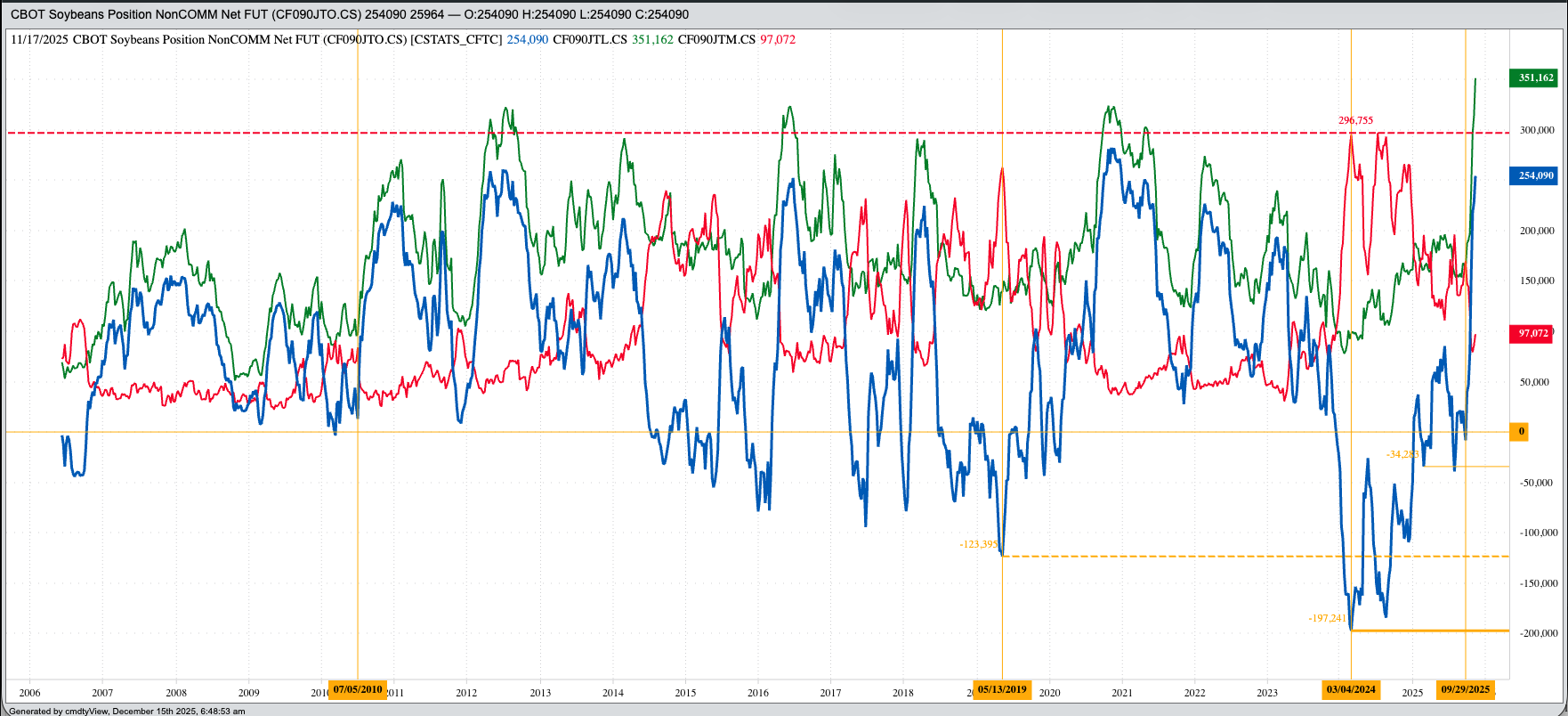 - On the noncommercial side, this led to a record large noncommercial long futures positing the week of November 18, oddly enough the week the US government reopened.