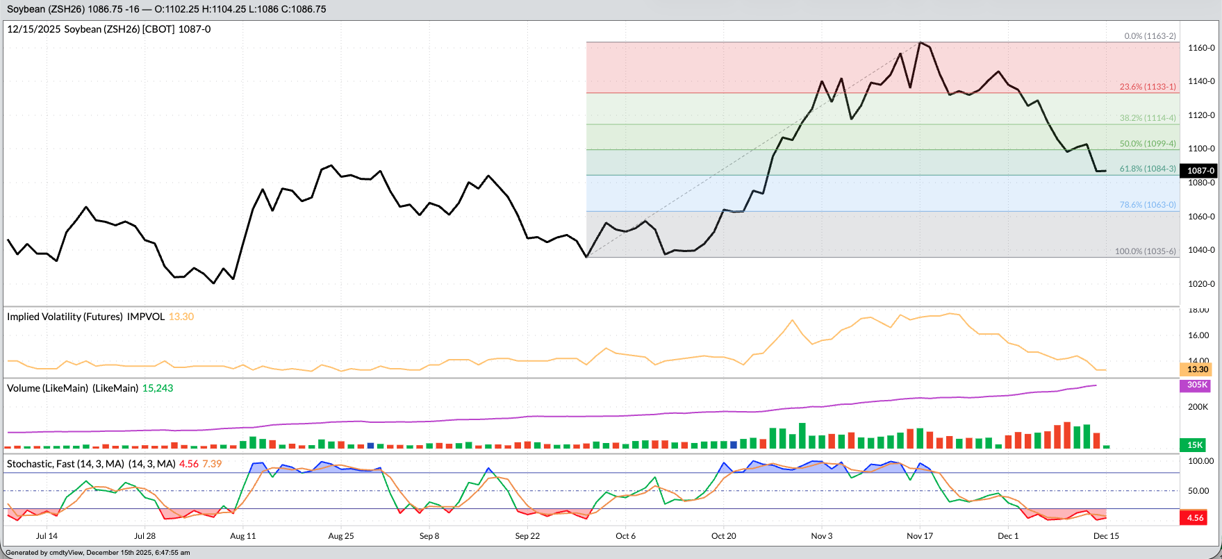 - The January futures contract (ZSF26) posted a low daily close of $10.2025 on September 30, the day before the US government shutdown.