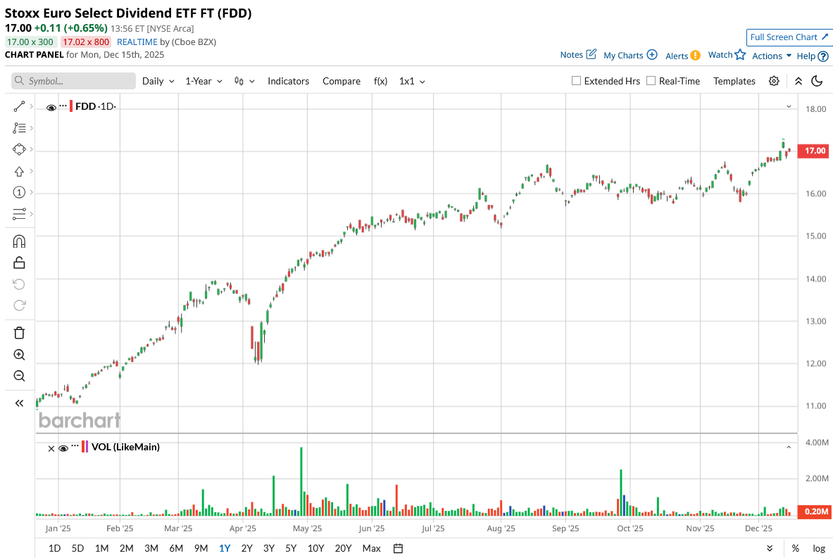 That’s why the First Trust STOXX European Select Dividend Index Fund (FDD) has become such a timely talking point. It’s a dividend-focused fund that sits right in the lane of Europe’s cash-heavy sectors and pays meaningful income while still having room to surprise on performance.