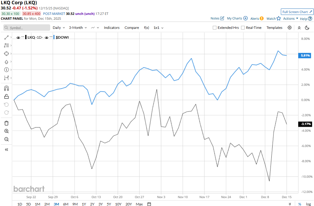Despite its notable strengths, LKQ stock has dropped 31.9% from its 52-week high of $44.82 touched on Mar. 10. Meanwhile, LKQ stock prices have dipped 3.3% over the past three months, underperforming the Dow Jones Industrial Average’s ($DOWI) 5.5% uptick during the same time frame.