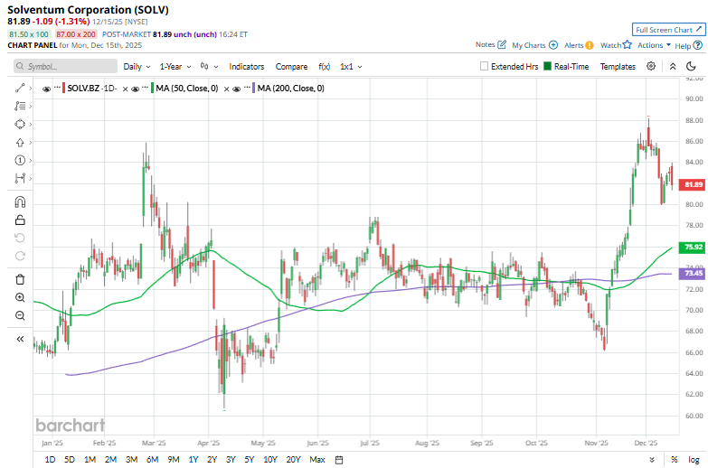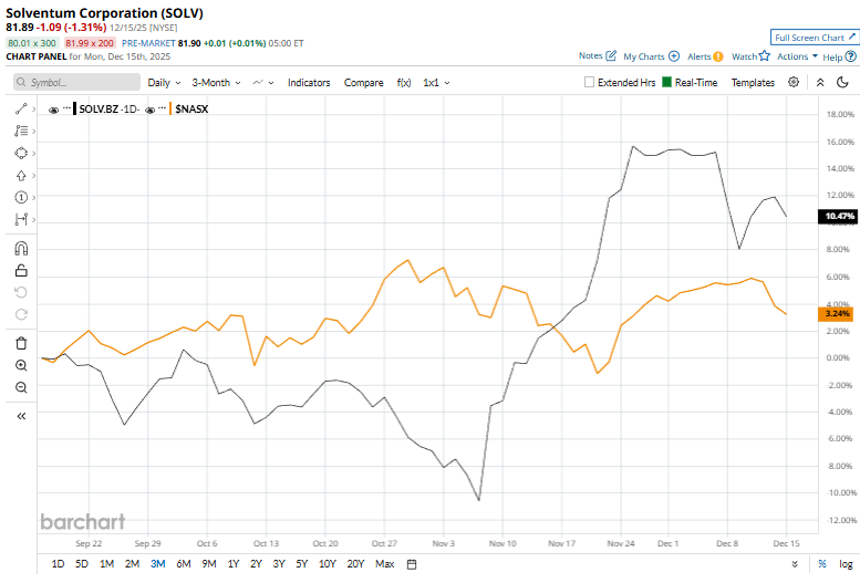 This healthcare company has dipped 7.2% from its 52-week high of $88.20, recorded recently on Dec. 2. Shares of SOLV have gained 11.9% over the past three months, outperforming the Nasdaq Composite’s ($NASX) 3.2% rise during the same time frame.