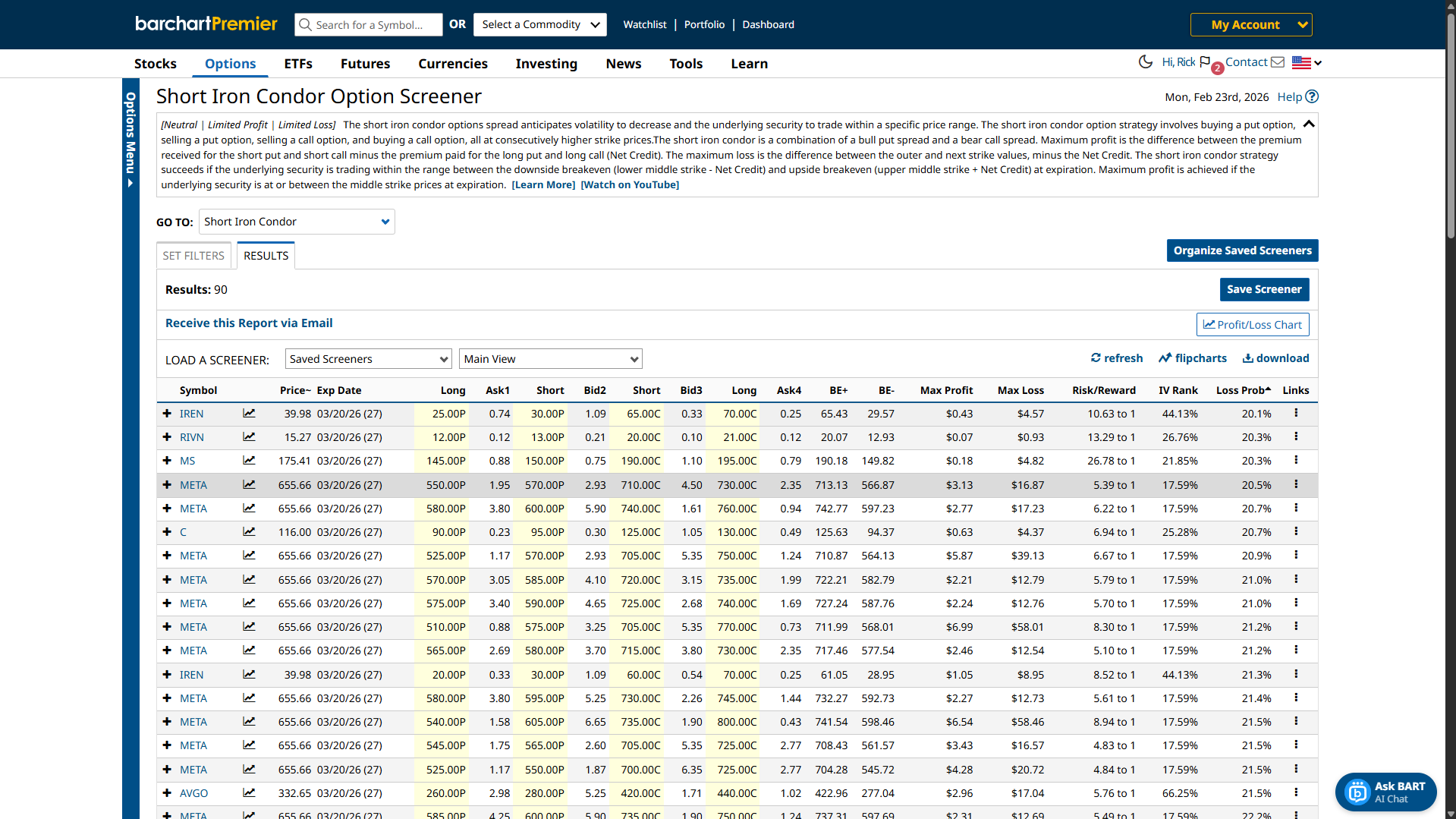 Short iron condors can be a powerful tool for generating income in range-bound markets, but they require careful due diligence and a keen eye for opportunities. And of course, maximize your chances of winning by using tools like Barchart’s Option Screener.
