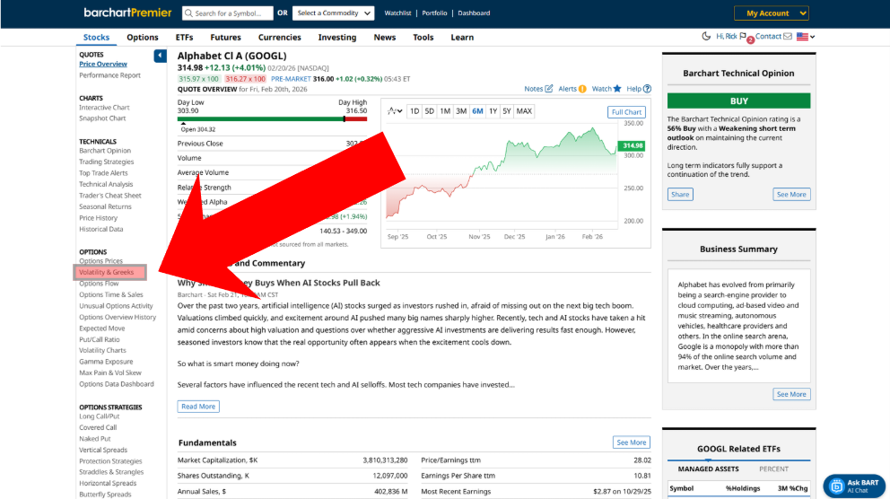 Volatility information for GOOGL stock can also be found on its new Options Data Dashboard, which you can find right here:
