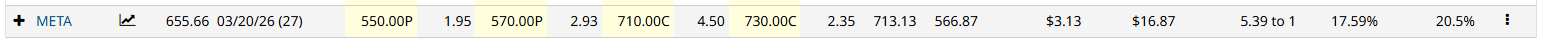 As long as Meta trades between $570 and $710 by March 20, 2026, all options expire worthless, and you get to keep the premium without further obligation.