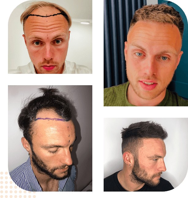 Patients featured in the clinic’s before-and-after galleries show significant improvements in density and hairline shape following both FUE and FUT procedures. Case studies include: