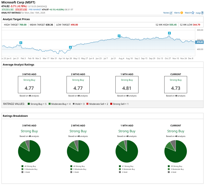 Analysts are upbeat and maintain a “Strong Buy” consensus rating on Microsoft stock.