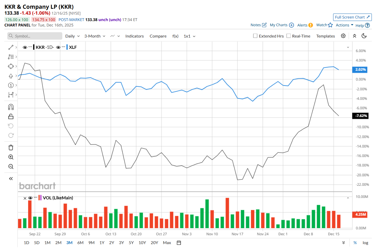 This financial company has slipped 21.7% from its 52-week high of $170.40, reached on Jan. 31. Shares of KKR have declined 7.6% over the past three months, underperforming the State Street Financial Select Sector SPDR ETF’s (XLF) 2% rise during the same time frame.