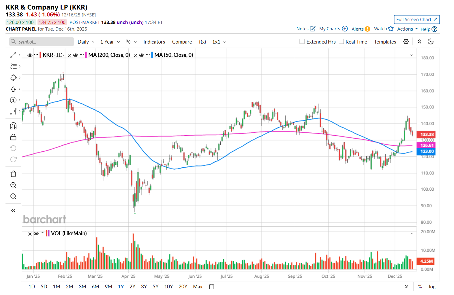 To confirm its recent bullish trend, KKR has been trading above its 200-day and 50-day moving averages since early December.