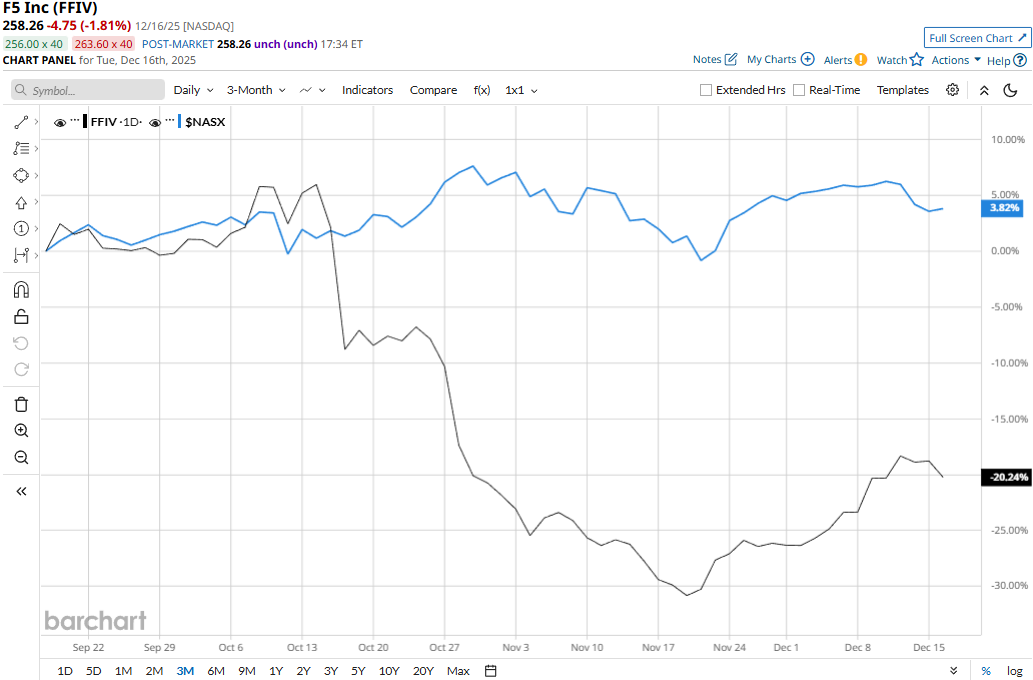 Despite its notable strengths, FFIV stock prices have dropped 25.4% from its all-time high of $346 touched on Oct. 10. Meanwhile, FFIV stock has plunged 20.2% over the past three months, significantly underperforming the Nasdaq Composite’s ($NASX) 3.5% uptick during the same time frame.