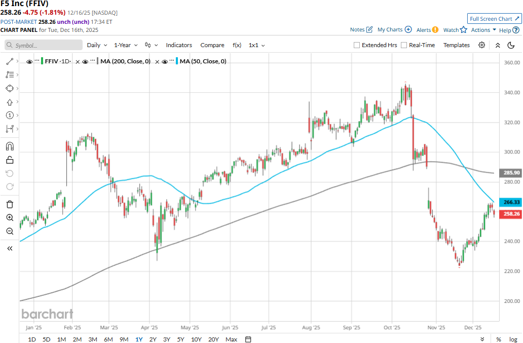 FFIV stock dropped below its 50-day moving average in mid-October and below its 200-day moving average in late October, underscoring its recent downturn.