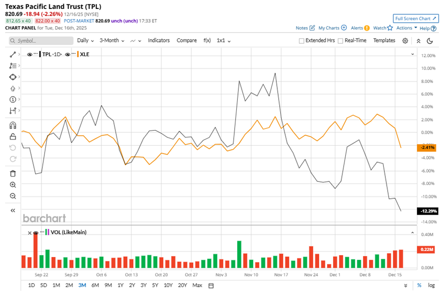 Despite its notable strength, TPL slipped 43.9% from its 52-week high of $1,462.78, achieved on Mar. 3. Over the past three months, TPL stock declined 12.3%, underperforming the Energy Select Sector SPDR Fund’s (XLE) 2.4% losses during the same time frame.