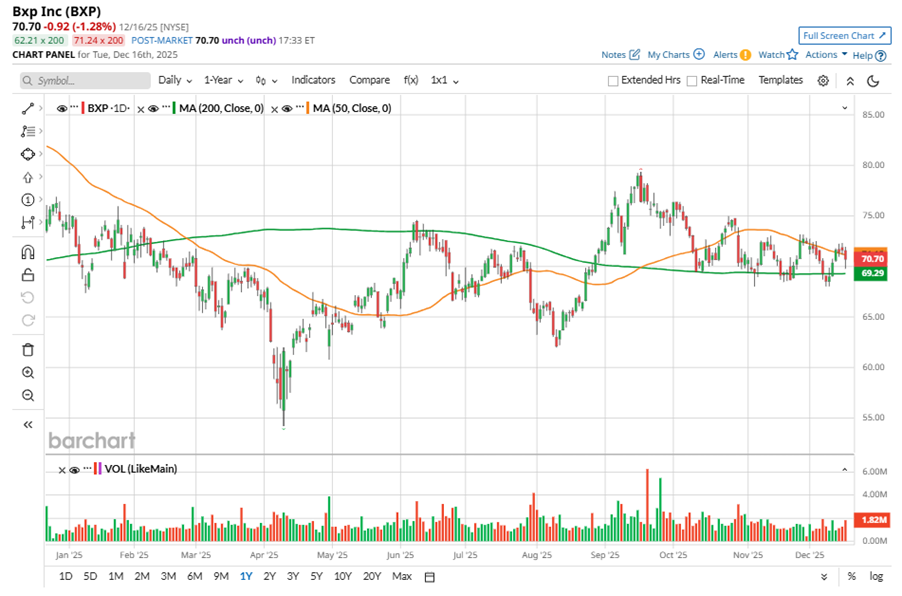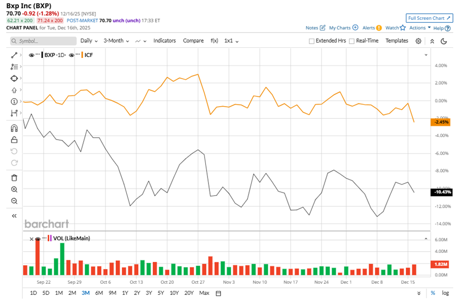 Despite its notable strength, BXP slipped 15.1% from its 52-week high of $83.29, achieved on Dec. 9, 2024. Over the past three months, BXP stock declined 10.4%, underperforming the iShares Cohen & Steers REIT ETF’s (ICF) 2.5% losses during the same time frame.
